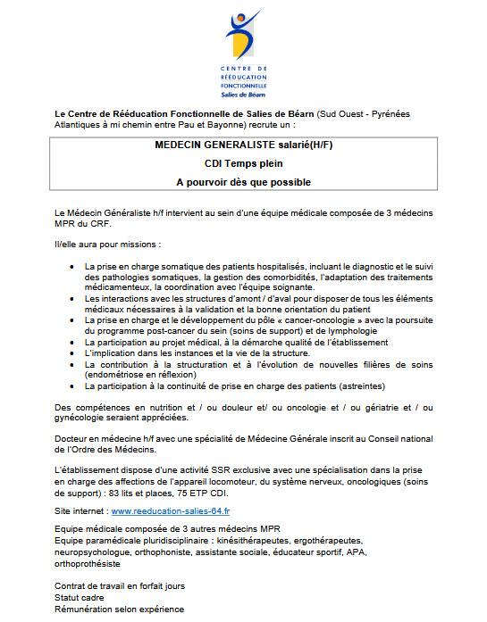Médecin Généraliste salarié : CRF de Salis de Béarn